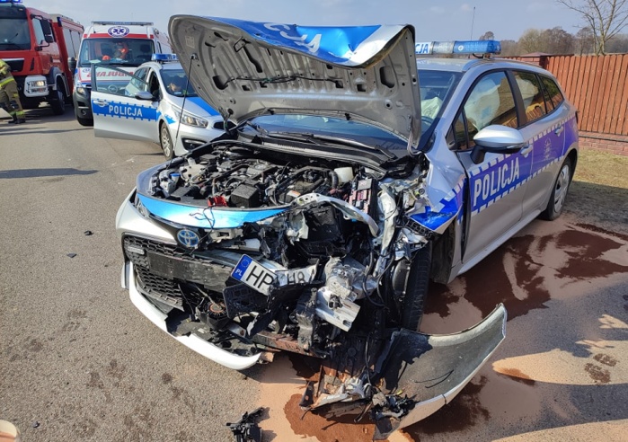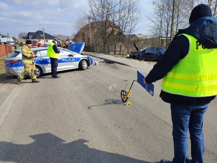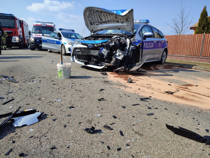 (Zam: 17.03.2022 r., godz. 15.19)Do zdarzenia doszło 17 marca około godz. 11.30 w Komorowie (gmina Rząśnik). Ze wstępnych ustaleń policjantów pracujących na miejscu zdarzenia wynika, że 21-letni kierowca seata jadąc w stronę Rząśnika zjechał na przeciwległy pas ruchu i doprowadził do czołowego zderzenia z radiowozem prawidłowo jadącym w stronę drogi wojewódzkiej nr 618. Badanie alkomatem wykazało, że 21-latek z powiatu pułtuskiego miał w organizmie ponad 2 promile alkoholu. Do szpitala zostało przewiezionych 2 policjantów oraz kierowca seata. Radiowozem podróżowało dwoje doświadczonych dzielnicowych z Posterunku Policji w Somiance, którzy pełnią służbę ponad 10 lat. W tym czasie do pracy jechała dzielnicowa z Wyszkowa, która udzieliła pomocy przedmedycznej poszkodowanym oraz wezwała służby.