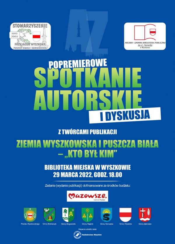 (Zam: 22.03.2022 r., godz. 11.55)Pierwsze spotkanie promocyjne książki odbyło się w bibliotece w styczniu tego roku („Wyszków doczekał się księgi pamięci"). Teraz biblioteka wraz ze Stowarzyszeniem Przyjaciół Wyszkowa, Puszczy Białej i Kamienieckiej zaprasza na kolejne spotkanie poświęcone publikacji. Wstęp wolny.