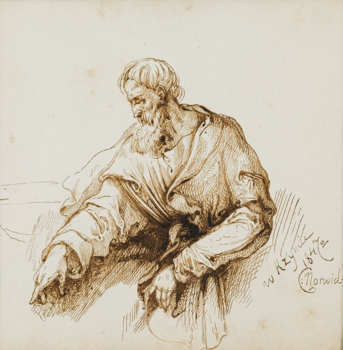 (Zam: 01.04.2022 r., godz. 15.09)Ministerstwo z powiatem wyszkowskim, gminą Zabrodzie i Fundacją Museion Norwid współprowadzi muzeum w Dębinkach. Rysunek „Brodaty mężczyzna w antykizowanej szacie, 1847” datowany i opisany w Rzymie (1847 r., CNorwid) to praca ukazująca mężczyznę w dojrzałym wieku, w obficie udrapowanej szacie. Została wykonana tuszem lub atramentem żelazowo-galusowym. Twarz przedstawionej postaci jest szczupła, z obfitym zarostem, ujęta w lewym profilu i lekko pochylona, ze wzrokiem skierowanym ku ziemi.