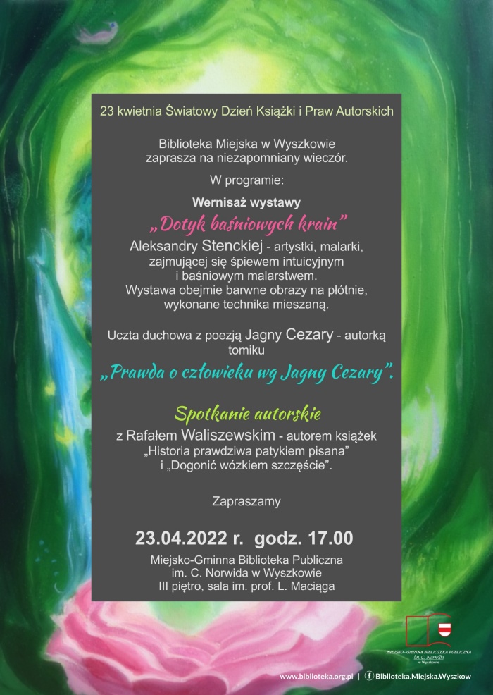 (Zam: 12.04.2022 r., godz. 12.54)- wernisaż wystawy Aleksandry Stenckiej „Dotyk baśniowych krain”,
