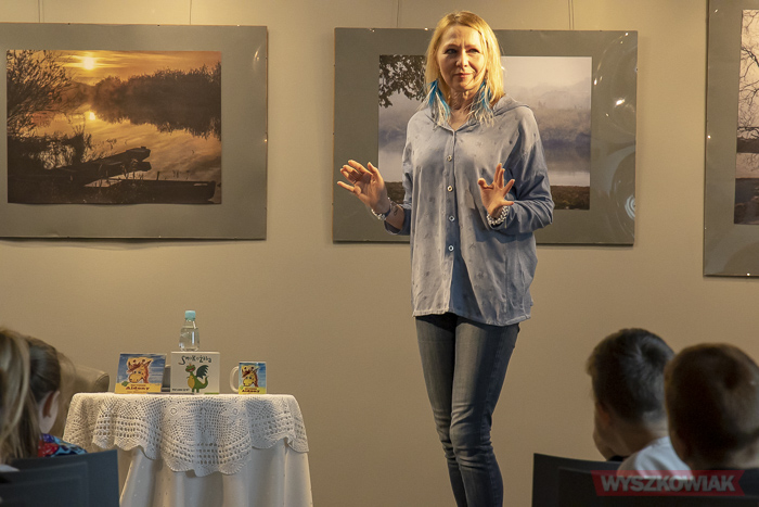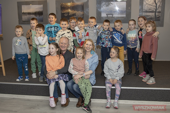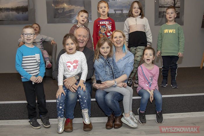 Podczas spotkania towarzyszył aktor Aleksander Mikołajczak, z którym tworzy Mam Teatr (aktorzy na zaproszenie biblioteki uczestniczyli w minionym roku w akcji Narodowe Czytanie). Zdradzili dzieciom jak aktorzy przygotowują się do występów, by co zrobić by wciągnąć słuchacza w świat opowieści itp.
