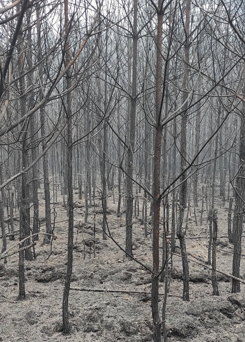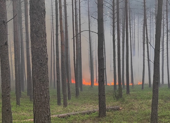 (Zam: 09.05.2022 r., godz. 10.04)Paliło się podszycie leśne. Ogień rozprzestrzeniał się w młodniku oraz częściowo w drzewostanie. W chwili przybycia pierwszego zastępu straży pożar obejmował dużą powierzchnię i rozprzestrzeniał się bardzo szybko.