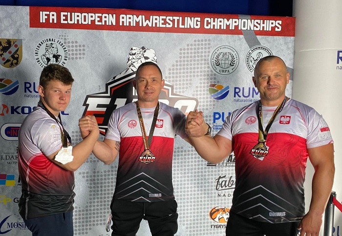 Wyszkowskie trio wystartowało w obu odsłonach europejskiego czempionatu, tzn. zarówno w siłowaniu na prawą jak i lewą rękę. Najlepsze wyniki wywalczył Dariusz Popiołek, który został Mistrzem Europy w kategorii Masters (+105 kg) w lewej ręce oraz Wicemistrzem w prawej. Srebro w prawej ręce (kategoria Masters 78 kg) oraz brąz w lewej zgarnął Mariusz Chodyna. Dwa brązowe medale wywalczył natomiast Dawid Olech (rywalizujący jako junior w kategorii +86 kg).