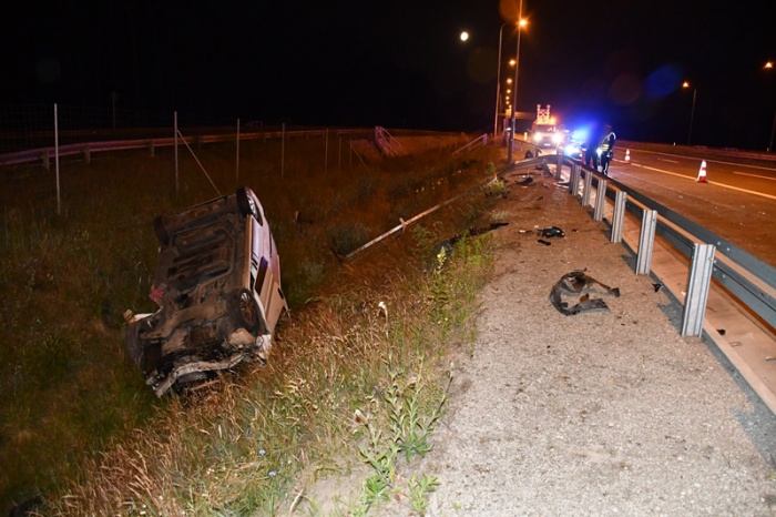 (Zam: 15.06.2022 r., godz. 18.57)W nocy z soboty na niedzielę (11/12 czerwca) po północy dyżurny wyszkowskiej komendy dostał informację o dachującym samochodzie na trasie S-8 na pasie ruchu w stronę Białegostoku w rejonie węzła komunikacyjnego w Knurowcu. Pracujący na miejscu policjanci wstępnie ustalili, że 40-letni kierowca dostawczego nissana, mieszkaniec powiatu ostrołęckiego, nie dostosował prędkości do warunków panujących na drodze, stracił kontrolę nad pojazdem i uderzył w bariery energochłonne, które w wyniku uderzenia uległy uszkodzeniu. Po przerwaniu barier, auto zjechało do przydrożnego rowu i dachowało.