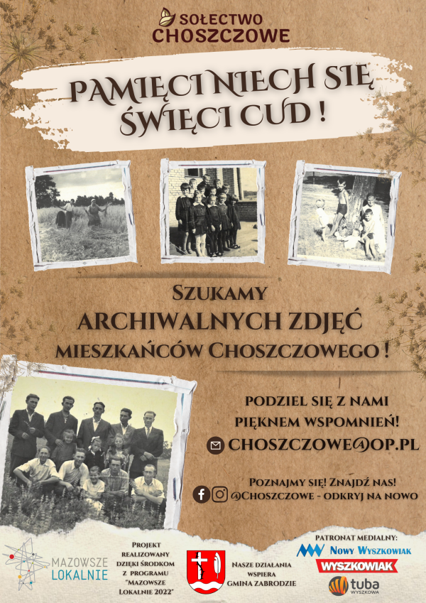 Dodatkowo, w ramach podjętych działań, wspólna przestrzeń przy placu zabaw i altanie wzbogaci się o nowe elementy małej architektury: kosze do segregacji odpadów, stojak na rowery i drewnianą tablicę pamiątkową. Podsumowanie działań zaplanowano we wrześniu – już dziś mieszkańcy zapraszają na piknik sąsiedzki, podczas którego zaprezentują efekty poszukiwań, podzielą się zebranymi wspomnieniami, będą mogli spotkać się z krewnymi dawnych mieszkańców. Nie zabraknie także lokalnych przysmaków. Wsparcie prowadzonych przez Choszczowe działań zadeklarowała Gmina Zabrodzie!
