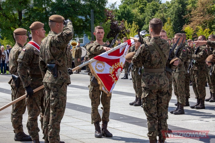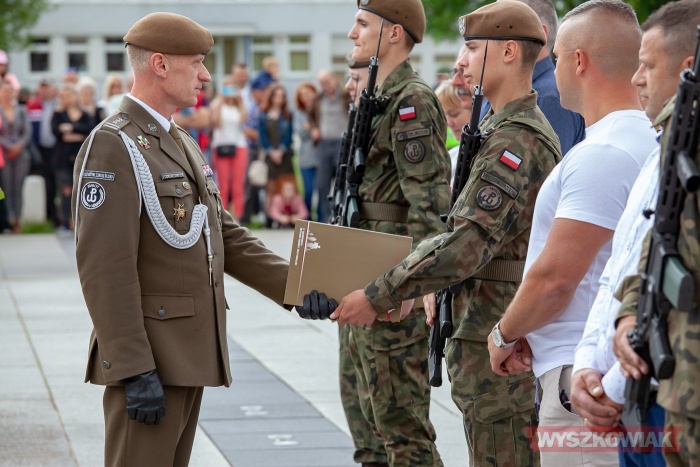 (Zam: 18.07.2022 r., godz. 09.32)Przysięgę na sztandar brygady złożyło 61 ochotników, którzy ukończyli szkolenie podstawowe w ramach projektu „Wakacje z WOT”, przeznaczonego dla kandydatów niemających nigdy wcześniej styczności z wojskiem. Podczas uroczystości towarzyszyli im żołnierze, którzy ukończyli 8-dniowe szkolenie wyrównawcze. Żołnierzom, którzy wykazali się zaangażowaniem, determinacją oraz bardzo dobrymi wynikami wręczono wyróżnienia i listy gratulacyjne