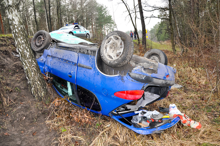 Do wywrócenia pojazdu doszło 27 grudnia ok. godz. 13.30 na trasie K-62 w Skuszewie (gmina Wyszków). 43-letnia mieszkanka powiatu legionowskiego kierująca peugeotem na łuku drogi jechała zbyt szybko, straciła panowanie nad samochodem i zjechała do przydrożnego rowu wywracając pojazd. Była trzeźwa.