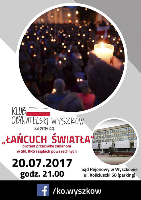 (Zam: 20.07.2017 r., godz. 08.08)Protest polegający m.in. na wznoszeniu zapalonych świec odbędzie się przed Sądem Rejonowym w Wyszkowie 20 lipca o godz. 21.00.