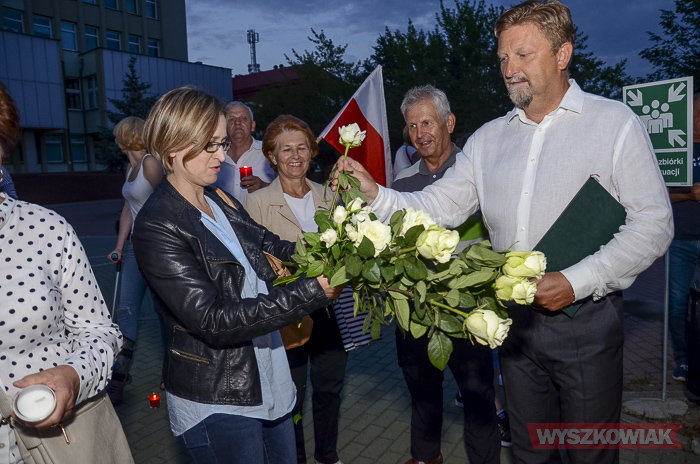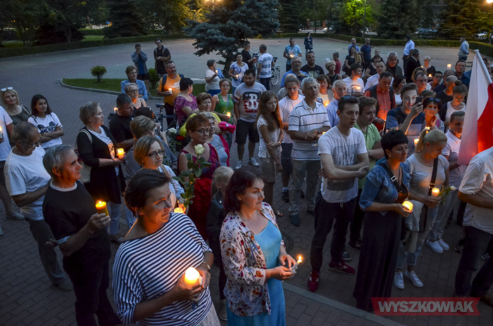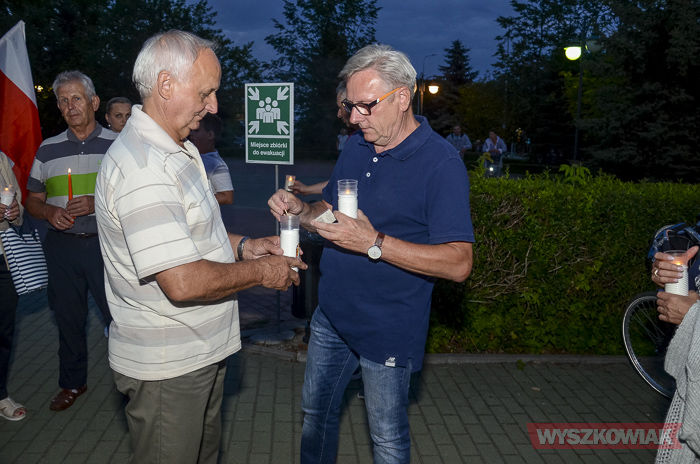 - Dołączając do setek polskich miast i ich mieszkańców, którzy podjęli inicjatywę „Akcja Demokracja”, także my mieszkańcy Wyszkowa stajemy dziś w łańcuchu czystych intencji – podkreślił Adam Mróz. – Podobnie jak tysiące Polaków szanujących państwo prawa i trójpodział władzy, chcemy takich reform sądów, które będą napisane ponad wszelkimi podziałami, w interesie zwykłych ludzi, a nie polityków rządzących krajem. Jesteśmy tu dzisiaj ze światłem, bo zwyczajem dawnych mieszkańców Polski chcemy odpędzić światłem zło, które w tym kraju się dzieje – podkreślił. – Chcemy ciszą i światłem wyrazić swój symboliczny sprzeciw wobec nieposzanowania fundamentów demokratycznego państwa prawa. Ustrój, w którym, jak rzekł Monteskiusz, twórca zasady trójpodziału władzy, jedna władza powściąga inną, uznajemy za najlepiej służący zwykłym ludziom i chroniący ich przed nadużyciami władzy. Przypominamy w duchu polskiej konstytucji – Rzeczpospolita jest dobrem wspólnym wszystkich obywateli. Rzeczpospolita Polska jest demokratycznym państwem prawnym, urzeczywistniającym zasady sprawiedliwości społecznej. Władza zwierzchnia Rzeczypospolitej Polskiej należy do Narodu. Konstytucja jest najważniejszym prawem Rzeczypospolitej Polskiej – zakończył.