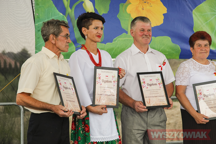 za zaangażowanie w organizację dożynek, aktywną i społeczną postawę, kultywowanie tradycji regionu i obrzędów ziemi wyszkowskiej. Burmistrz przyznał też wyróżnienia za wieńce dożynkowe.