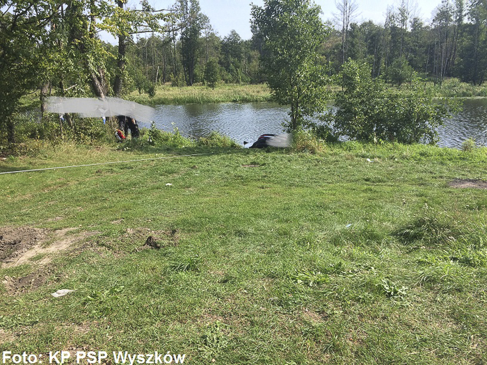 Strażacy wyciągnęli pojazd z Fiszoru w Młynarzach (gmina Zabrodzie)