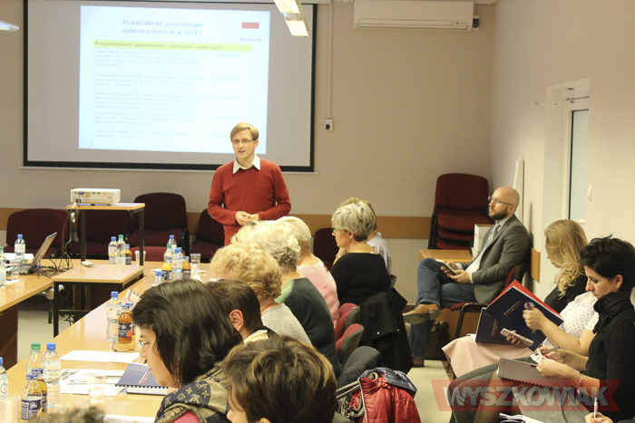 Przed szkoleniem z zakresu zasad realizacji i rozliczania zadań publicznych przekazanych organizacjom pozarządowym przez gminę Wyszków głos zabrał Łukasz Wachowski. Przedstawiciel Mazowieckiego Ośrodka Wsparcia i Ekonomii Społecznej nakłaniał wyszkowskie stowarzyszenia i kluby sportowe do skorzystania z różnych form wsparcia proponowanych przez ośrodek. Połowa przedstawicieli NGO zapisała się na wstępną listę uczestnictwa w dodatkowych indywidualnych konsultacjach ze specjalistą oraz szkoleniu z zakresu pozyskania subregionalnych środków zewnętrznych.