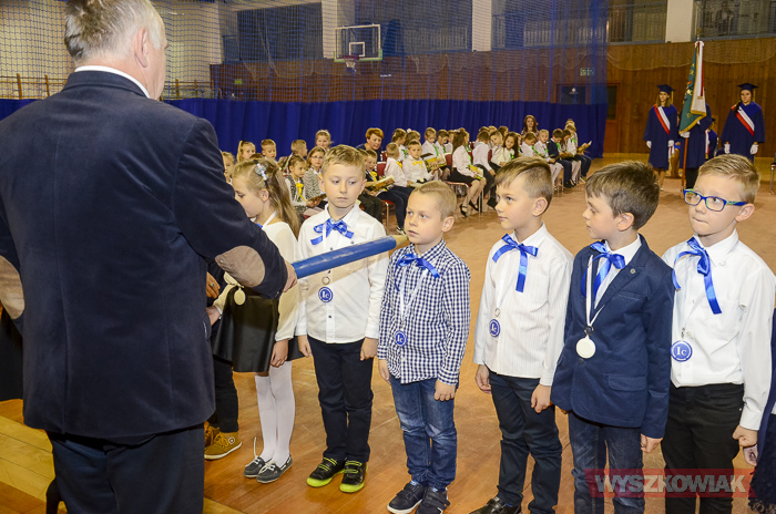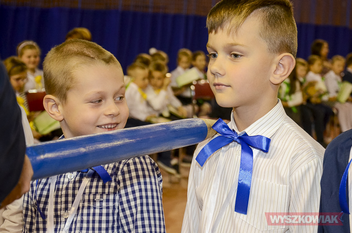 - Proszę byście w każdym uczniu znaleźli jakiś talent – stwierdził. – Przez 26 lat miałem okazję pasować ponad 5000 młodych obywateli tego miasta. Dziś wy dołączacie do tego grona – podkreślił i, jak nakazuje tradycja, uderzając ramię każdego pierwszoklasisty wielkim ołówkiem pasował go na ucznia. Dzieci złożyły też ślubowanie na sztandar szkoły. W tej chwili towarzyszyli im najbliżsi – rodzice, rodzeństwo, opiekunowie. Pierwszoklasiści na tę uroczystość pod kierunkiem wychowawców przygotowali też przedstawienie, podczas którego śpiewali i recytowali wiersze.