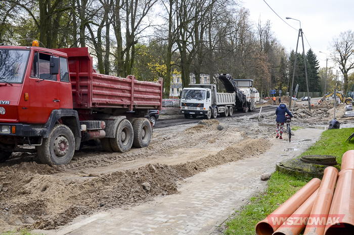 (Zam: 26.10.2017 r., godz. 17.42)Roboty miały być pierwotnie wykonane do końca września, lecz termin został przedłużony o miesiąc. 26 października pojawiły się nowe utrudnienia związane z zamknięciem dla ruchu odcinka od ul. Kościuszki do alei Róż (oraz parkingów przy urzędzie). Na dalszym docinku prace nadal trwają, nieprzejezdne jest skrzyżowanie ul. 3 Maja z Komisji Edukacji Narodowej.