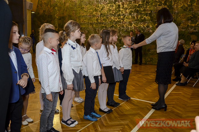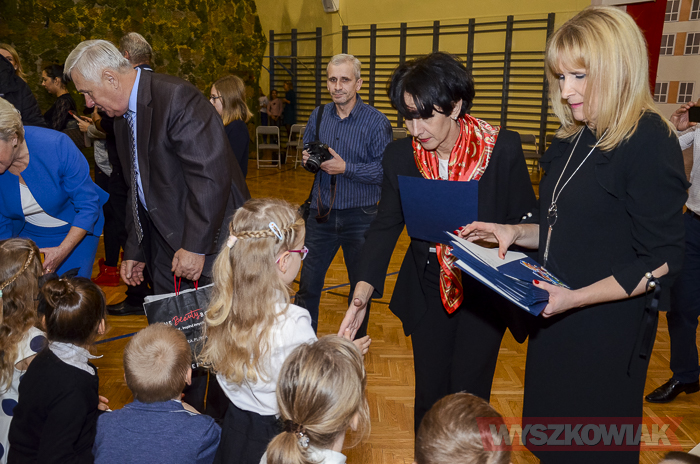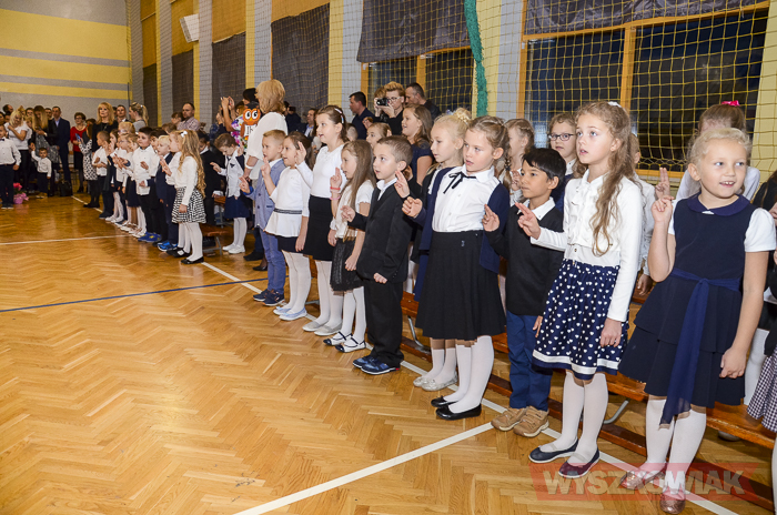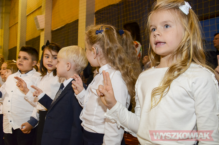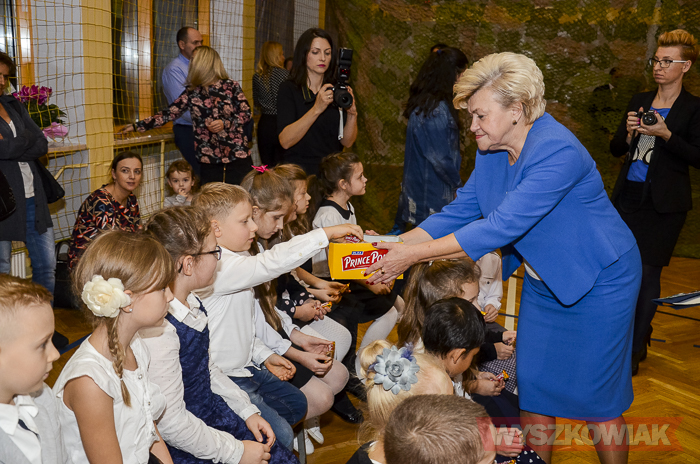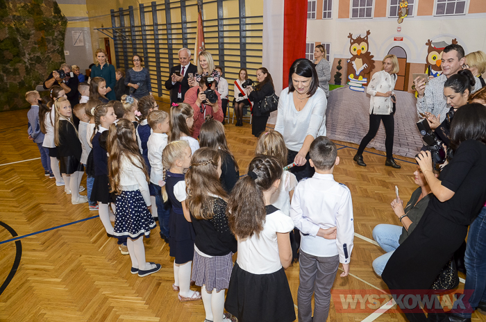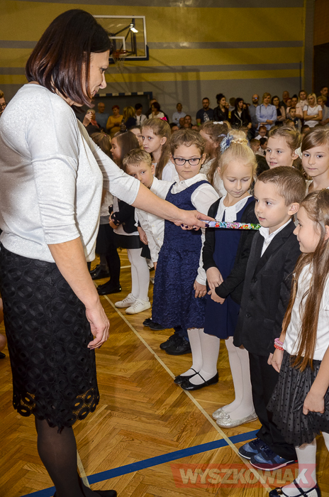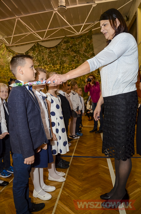 (Zam: 27.10.2017 r., godz. 08.22)- To dla was ważny dzień. Dwa miesiące jesteście w szkole, pilnie przygotowywaliście się na dzisiejszą uroczystość – zwróciła się do pierwszoklasistów dyrektor Szkoły Podstawowej nr 1 Hanna Dziubiel. – To jedno z najważniejszych wydarzeń w szkole– od dziś stajecie się pełnosprawnymi uczniami, za 8 lat opuścicie mury tej placówki – dodała i zwróciła się do rodziców. – Państwa dzieci rozpoczynają naukę w ramach nowej podstawy programowej. Mam nadzieję, że za 8 lat dostaną się do wymarzonych szkół – stwierdziła. – Proszę państwa o współpracę, byśmy byli partnerami, bo zależy nam na tym, by wasze dzieci były mądrymi, dobrze wychowanymi uczniami.