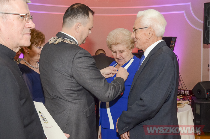Medale „Za długoletnie pożycie małżeńskie” wręczał burmistrz Grzegorz Nowosielski. Gratulacje od biskupa parom przekazał proboszcz parafii św. Idziego ks. Zdzisław Golan.