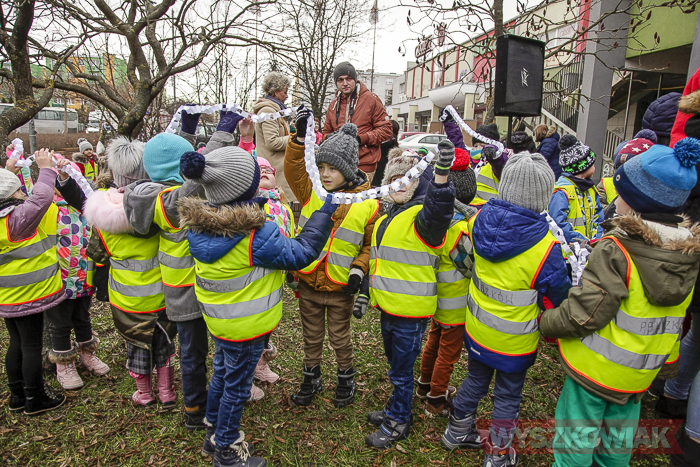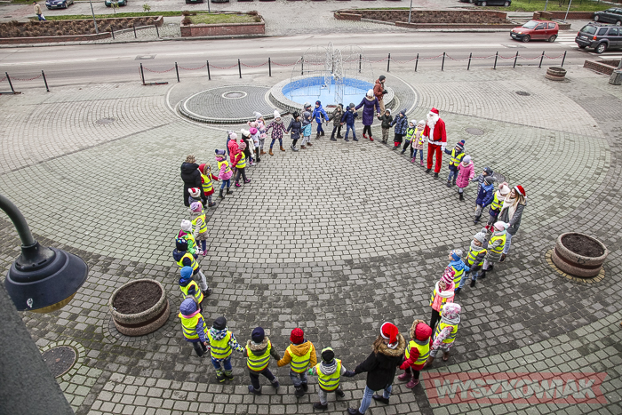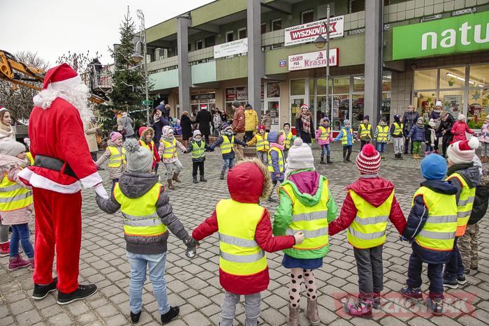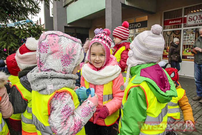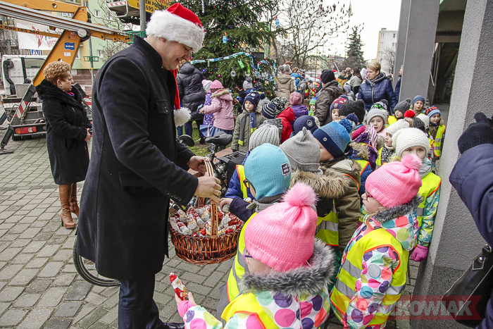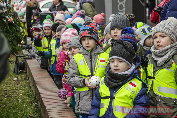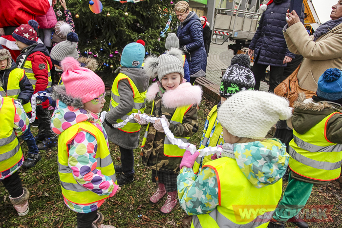 (Zam: 15.12.2017 r., godz. 11.12)Zarówno ubieranie choinki, jak i wigilia miejska to inicjatywa Klubu Przyjaciół Wyszkowa, który organizacyjnie wspiera gmina Wyszków. Stąd 15 grudnia z przedszkolakami spotkali się zarówno przedstawiciele stowarzyszenia, jak i samorządu. Na choince zawisły bombki i ozdoby przygotowane przez dzieci – m.in. papierowe łańcuchy. Każde dziecko otrzymało czekoladowego mikołaja, a spotkanie stało się okazją do wspólnych zabaw ruchowych.